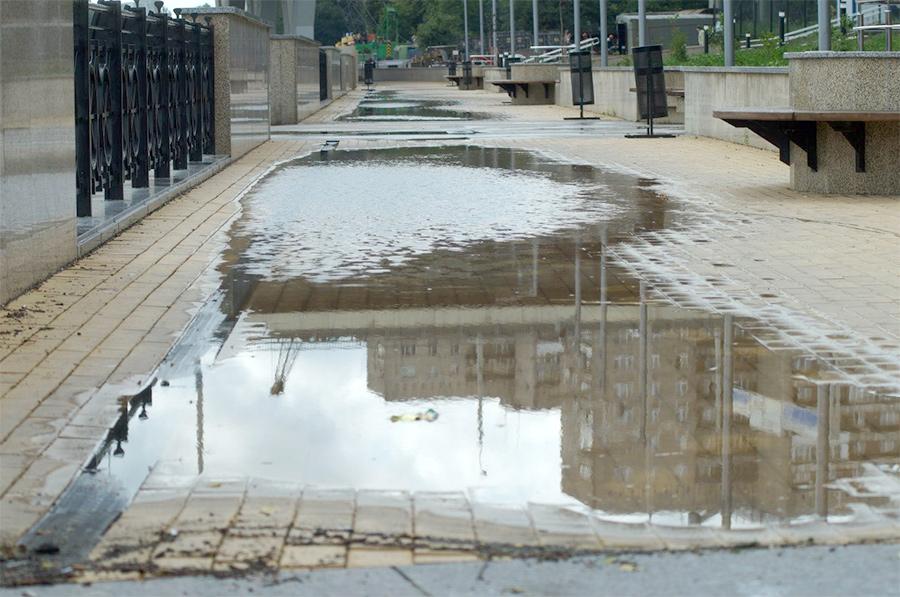 Введённый в эксплуатацию участок набережной Трибуца не выдержал июльского ливня. Как передаёт корреспондент «Нового Калининграда.Ru», в понедельник там стоит вода, с которой не справляется ливневая канализация. Отметим, лужи на ещё не введённой набережной были и в марте, на них тогда жаловались местные жители.