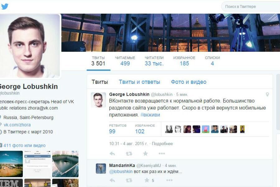 «„ВКонтакте“ возвращается к нормальной работе. Большинство разделов сайта уже работает. Скоро в строй вернутся мобильные приложения», — написал Лобушкин.