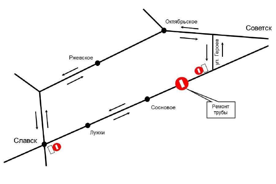 С 8 часов утра среды до 10 часов вечера субботы, 10 октября перекрывается проезд транспорта на участке трассы «Советск — Славск». Неудобства вызваны работами по капремонту водопропускной трубы. На время изменения схемы движения будет организован объезд по схеме, утвержденной ГИБДД.