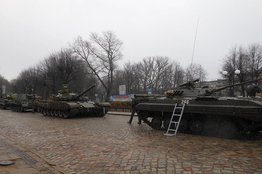В Советске на главной площади города разместили больше десятка единиц военной техники, в том числе и комплекс