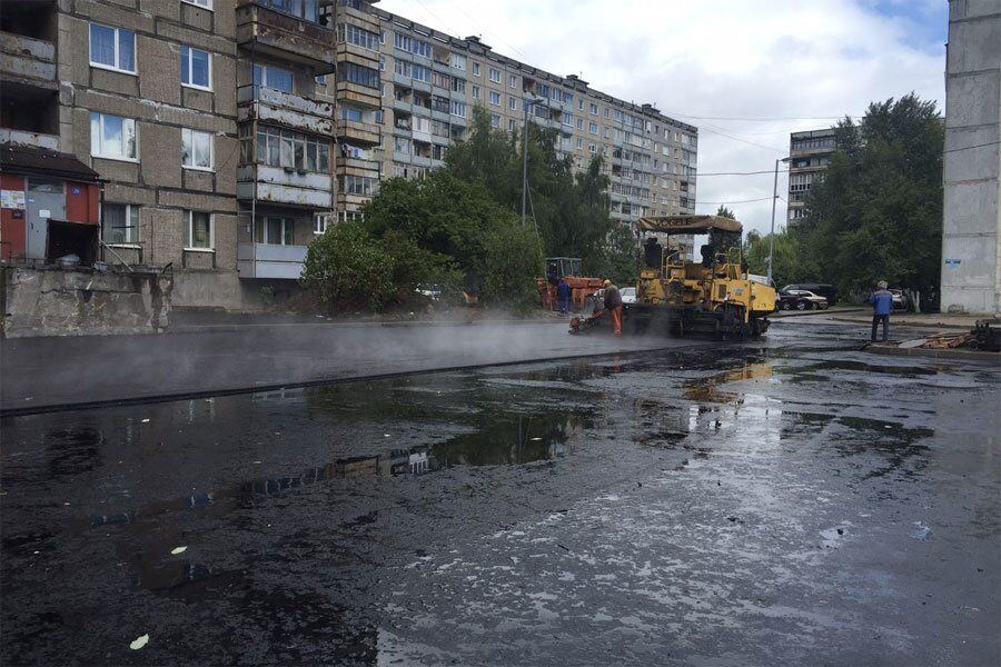 По словам корреспондента, асфальтом прямо в лужи застилается территория парковки у дома 17-25 по улице Октябрьской.
