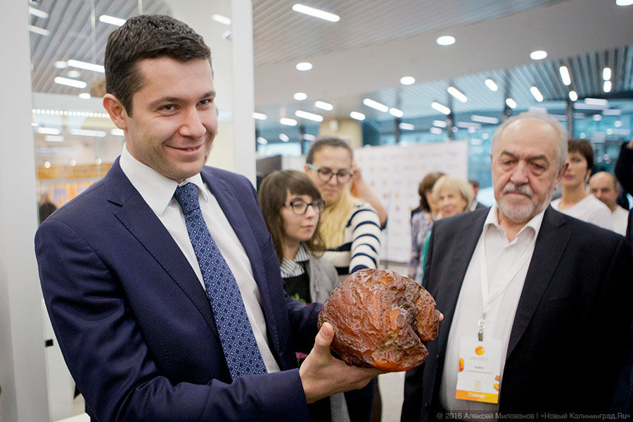 Врио губернатора Калининградской области Антону Алиханову в ходе первого янтарного форума в Светлогорске продемонстрировали самый крупный самородок стоимостью более 2,8 млн рублей. Как передаёт корреспондент «Нового Калининграда.Ru», Алиханов взвесил янтарь в руках и сообщил, что его стоимость составляет «несколько годовых губернаторских зарплат».