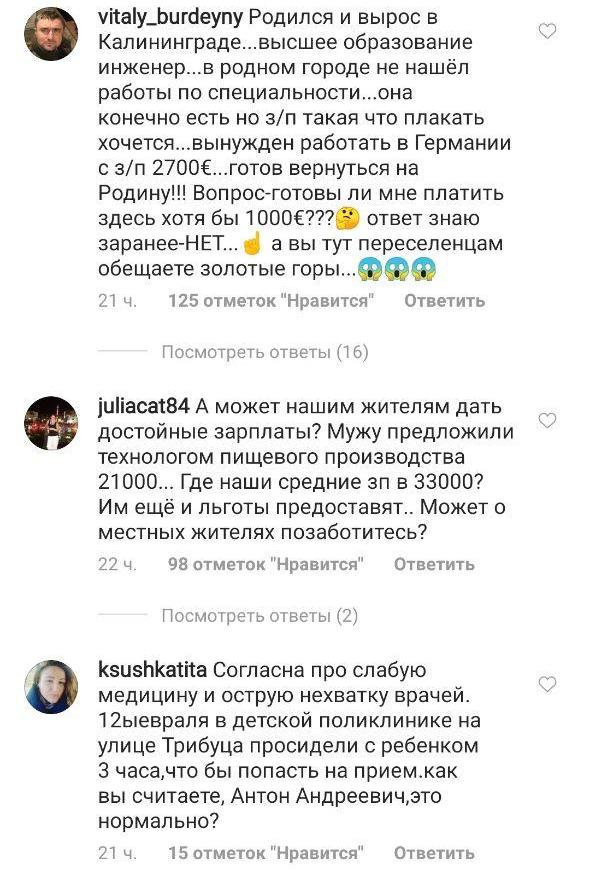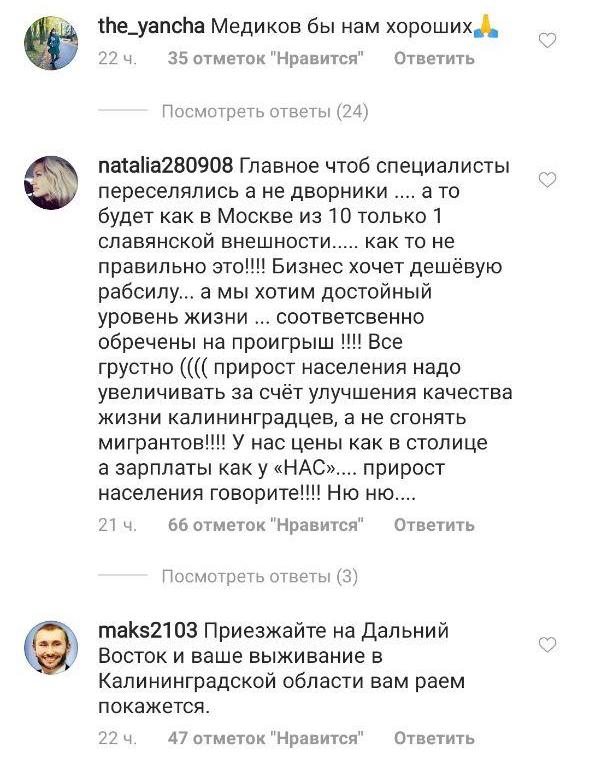 Публикация губернатора возмутила десятки пользователей, которые считают, что в регионе тоже достаточно специалистов, но им подобные льготы не положены. «Наши родители поднимали этот город, строили, нас растили. Мы получали образование и не одно, а этим... льготы... Чудесно!!!» — написала одна из подписчиц.