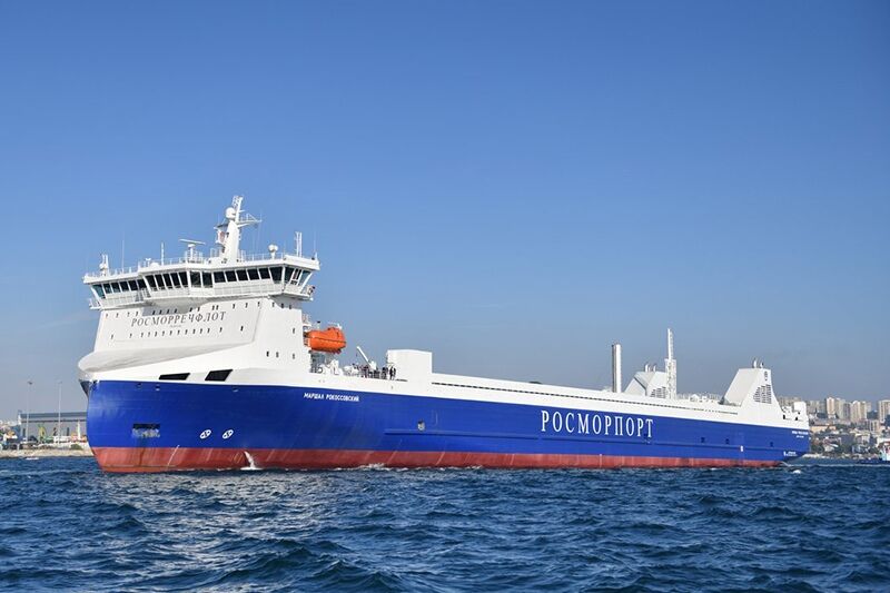 Автомобильно-железнодорожный паром «Маршал Рокоссовский» предназначен для перевозки железнодорожных составов российского стандарта с шириной колеи 1 520 мм, а также других накатных грузов, отмечается на сайте «Росморпорта».