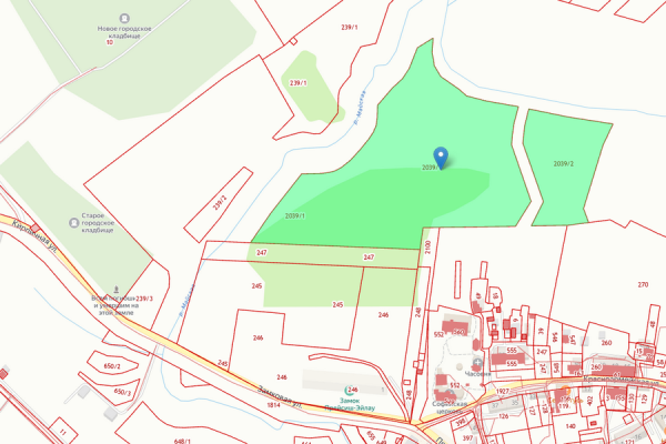 Земельный участок с кадастровым номером 39:01:000000:2039 площадью 50200 кв. м. отнесён к категории СХ-3 (зона сельскохозяйственного использования из земель населенных пунктов) с видом разрешённого использования — «благоустройство территории». Часть земельного участка, согласно документации, попадает в водоохранную, а также в прибрежную зоны реки Майская. Допустимых параметров разрешённого строительства объекта капитального строительства не установлено. Первоначальная цена участка объявлена в размере 881,2 тыс. рублей.
