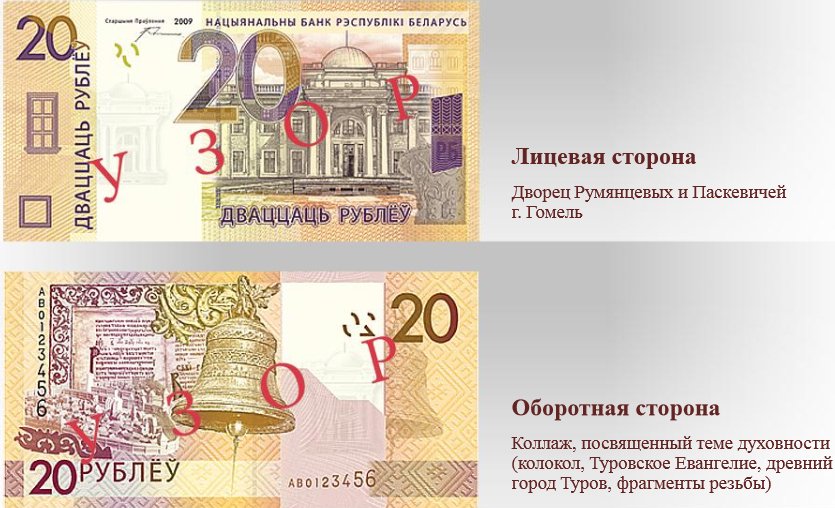 Агентство также отмечает, что новые купюры похожи на евро. «Общая концепция дизайна новых банкнот соответствует девизу „Мая краіна — Беларусь“. Каждая банкнота посвящена одной из областей страны и Минску. Соответствие области номиналу банкнот определено в алфавитном порядке. Изображение банкноты номиналом 5 рублей посвящено Брестской области, 10 рублей — Витебской, 20 рублей — Гомельской, 50 рублей — Гродненской, 100 рублей — Минской, 200 рублей — Могилевской, 500 рублей — Минску», — сообщает агентство.