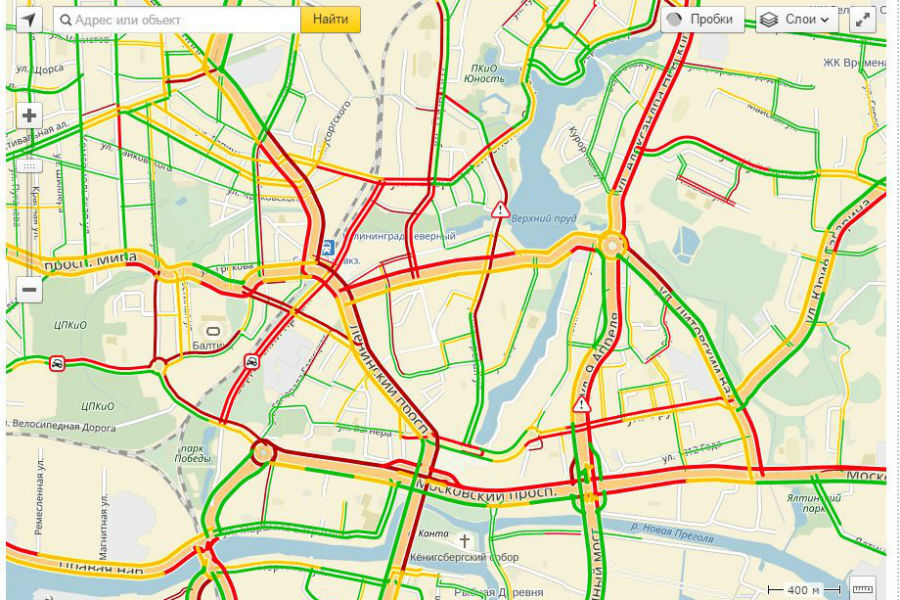 В Калининграде в среду вечером серьезно затруднено движение на всех основных магистралях города. По данным сервиса «Яндекс-пробки», самые серьезные проблемы — на Московском проспекте и на ул. Горького.