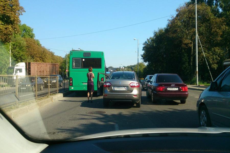 Авария произошла в пятницу около 10:20. На дороге столкнулись пассажирский автобус и легковой автомобиль «Рено». По данным свидетелей, никто из людей не пострадал. Транспортные средства перегородили 1,5 полосы по направлению в центр города. Движение затруднено.