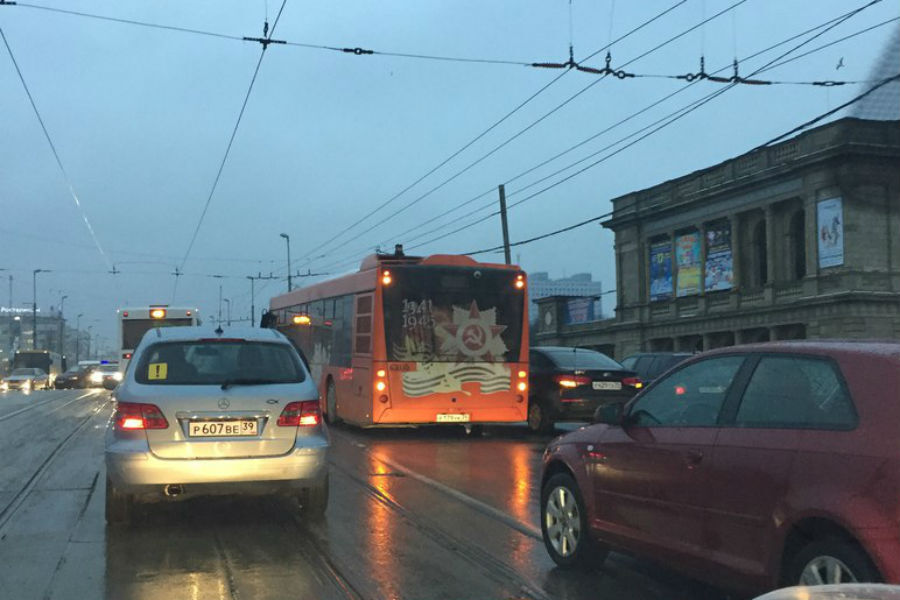 В Калининграде из-за ДТП затруднен проезд по эстакадному мосту в сторону центра. Об этом пишут автомобилисты в сообществе «ВКонтакте». Как уточняют очевидцы, авария случилась на мосту напротив Дворца молодежи, бывшего ДКМ. Столкнулись автомобиль «Форд» и пассажирский автобус. «Пробка начинается от Южного вокзала», — пишут водители.