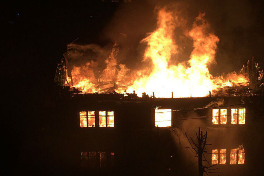 По данным свидетелей, столб пламени от горящего здания виден на большом расстоянии от места происшествия. Рядом с горящим строением находится стройплощадка и несколько жилых домов.