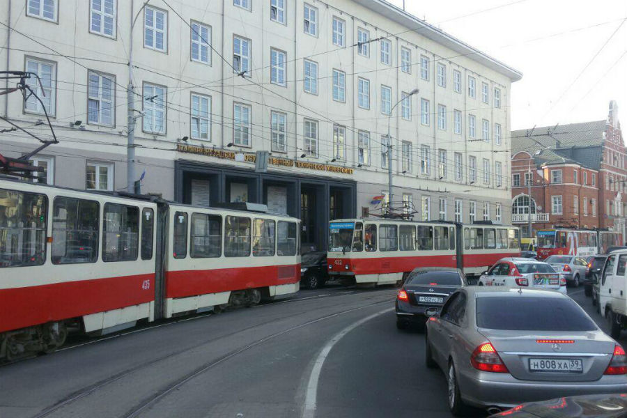 На Советском проспекте в областном центре остановились трамваи. Об этом корреспонденту «Нового Калининграда.Ru» сообщил очевидец. Перед перекрестком с площадью Победы уже собралась «очередь» из трех трамваев. «Они без пассажиров, почему встали, непонятно, может,