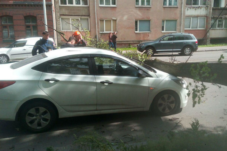 Ранее сегодня на улице Летней также под порывами ветра дерево упало на три припаркованных на обочине автомобиля.