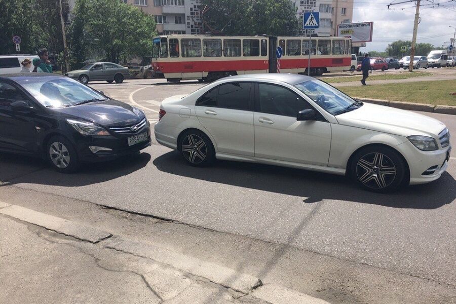 «Возле Дворца бракосочетаний на кольце комбо: белому мерседесу с красоткой за рулём въехали в зад (наверное, предлог познакомиться), следом на пешеходе по направлению к «Плазе» сбили бабушку. Ну и бонус — на подъёме с Московского на эстакаду в сторону Балтрайона тоже авария», — написал один из очевидцев.