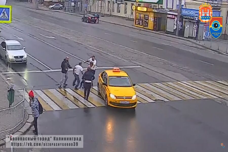 На записи также видно, что к драке присоединились водитель такси и другие пассажиры. Всего в потасовке участвовали шесть человек. Драка продолжалась несколько минут, затем водитель автомобиля распылил содержимое газового баллончика в лицо одному из ее участников. Полиция Калининграда начала проверку.