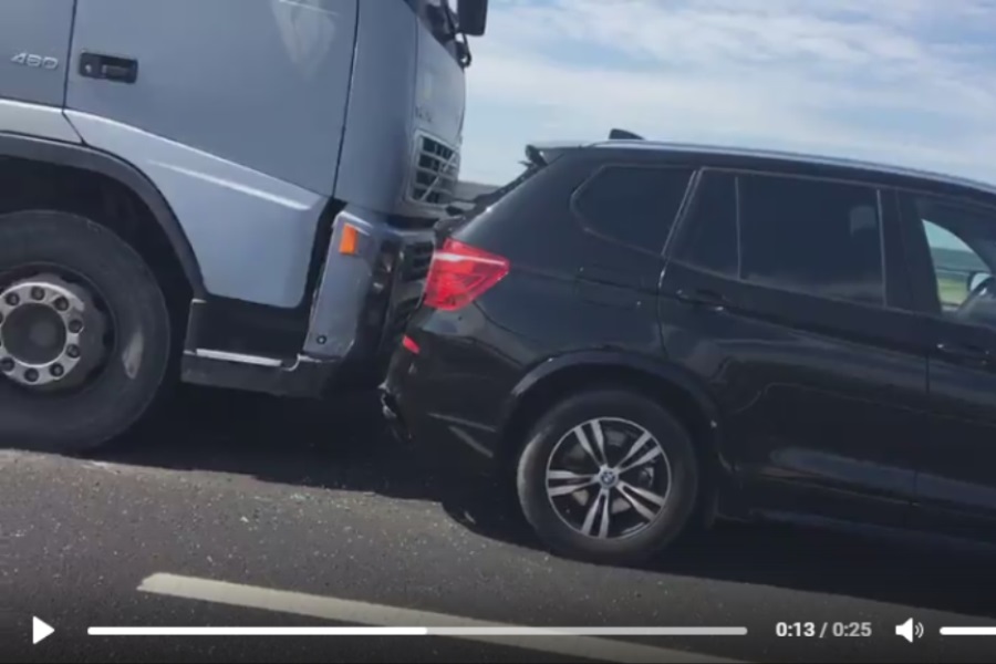 После съезда в сторону Орловки столкнулись два большегруза и четыре легковых автомобиля. Сведений о пострадавших нет, на месте аварии работали медики скорой помощи, машины получили значительные повреждения.