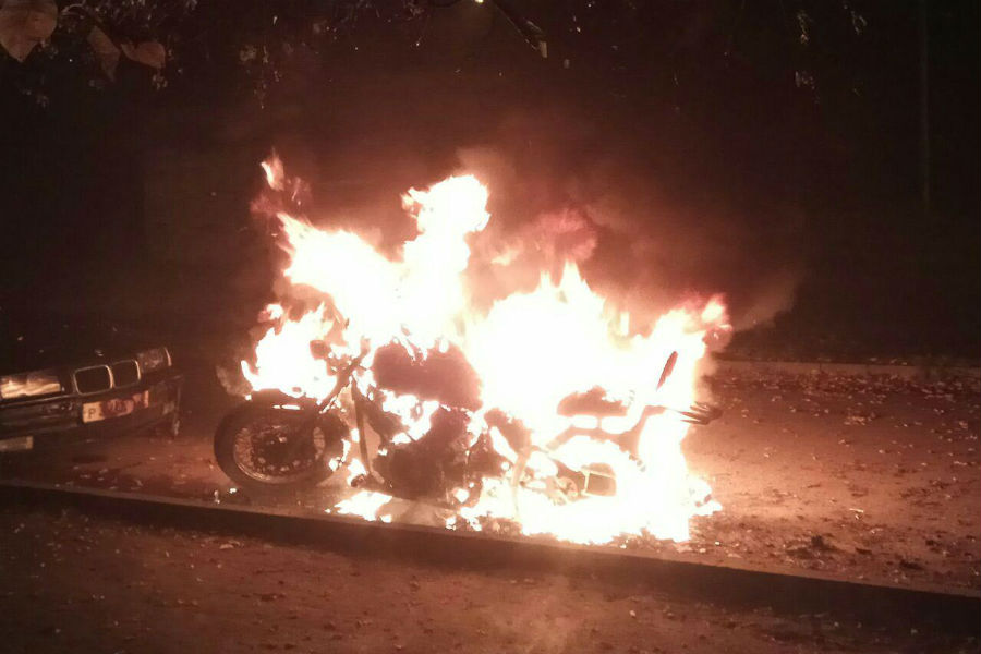В ночь на субботу во дворе дома по ул. 1812 года, где проживает главный редактор «Нового Калининграда» Алексей Милованов, сгорел его мотоцикл. Это произошло около двух часов, сообщил корреспонденту «Нового Калининграда» Милованов.