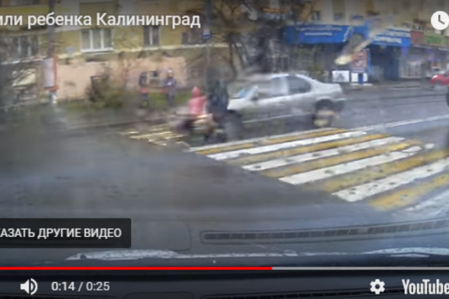 На видеохостинге Youtube опубликованы кадры, на которых запечатлен момент ДТП с участием двух пешеходов — матери с