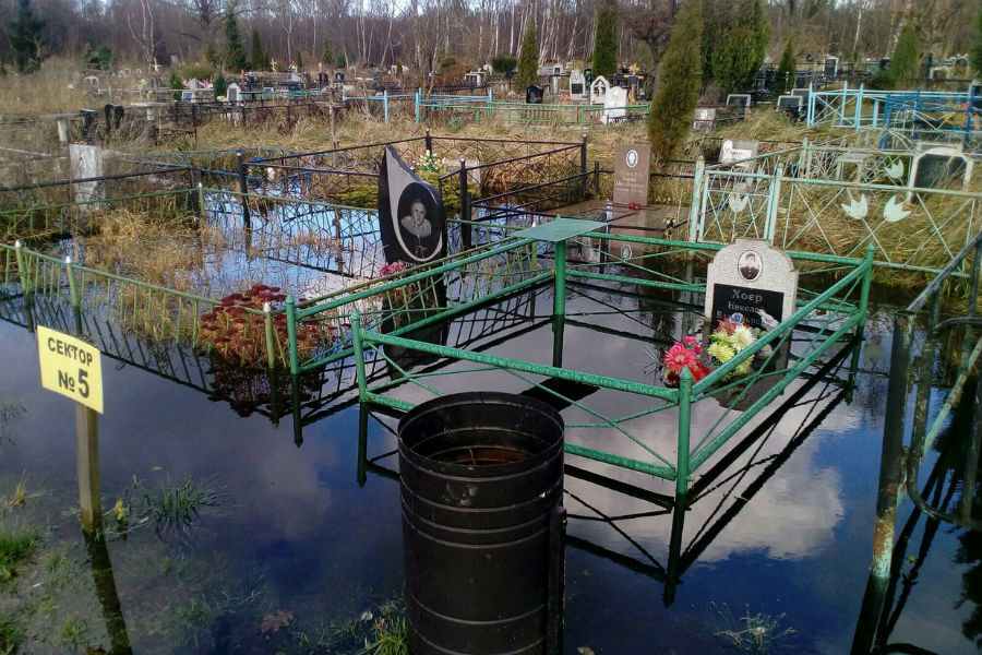 «Сегодня ездила на городское кладбище и увидела такую картину. Все могилы полностью затоплены водой, невозможно никуда подойти. У моих бабушки и дедушки нет воды, но к могиле не подойти, ноги проваливается в землю, а вода стекает под памятник, отчего он провалился», — написала она также в соцсетях. Один из комментаторов оставил под постом Светланы сообщение о том, что такая ситуация там наблюдается уже больше месяца.