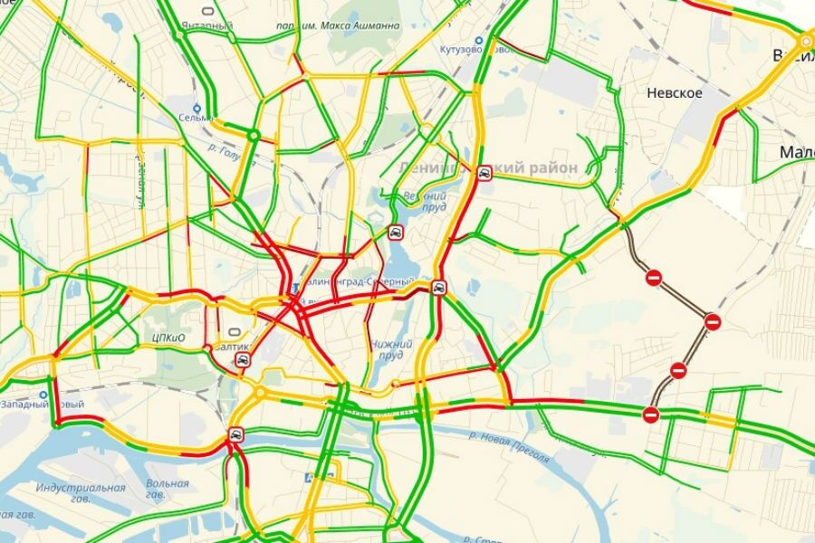 По его данным, скорость движения на некоторых центральных улицах составляет 3–5 км в час. Дорожные аварии произошли на пл. Василевского, улицах Тельмана, Артиллерийской, Гвардейском проспекте, у двухъярусного моста.