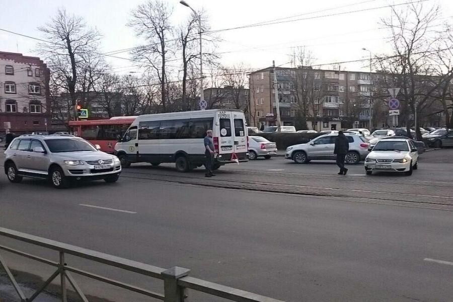 В Калининграде на ул. Черняховского возле здания ГИБДД произошла авария с участием маршрутного такси и легкового автомобиля. Как сообщают очевидцы, столкновение произошло, когда легковушка выезжала на главную дорогу с второстепенной. В результате маршрутка перекрыла трамвайные пути.