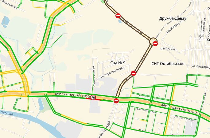 Сервис «Яндекс. Пробки» указывает, что дорожное происшествие случилось недалеко от поворота на улицу Суздальскую. Средняя скорость автомобильного потока в этом месте — 10 километров в час. Ситуация осложняется тем, что на этом участке дороги ведутся ремонтные работы.