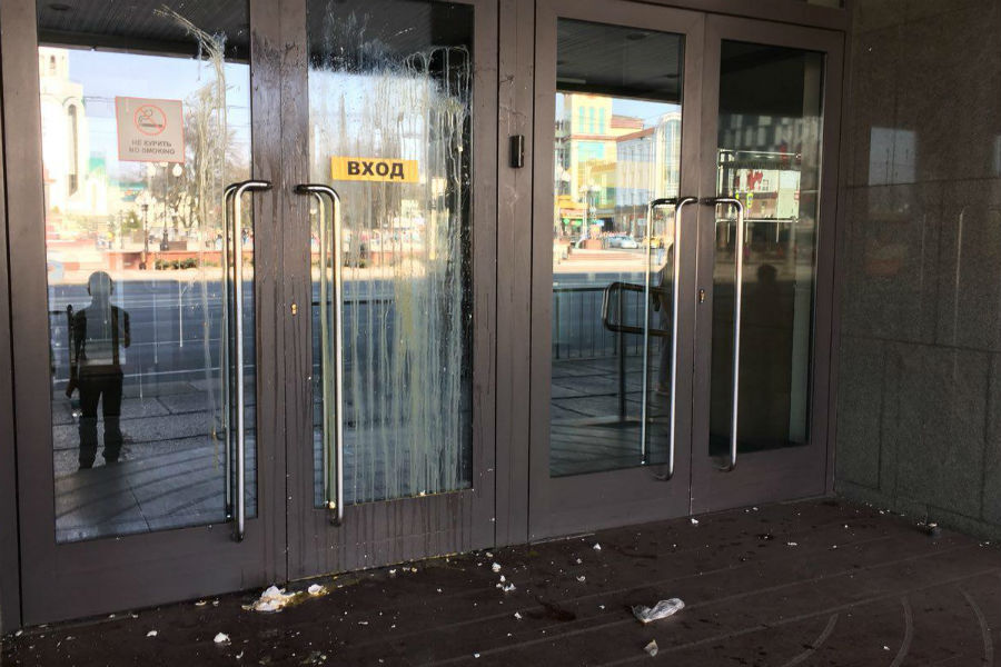 В Калининграде вход в здание администрации неизвестные закидали яйцами. Об этом в воскресенье, 8 апреля, с места инцидента передает корреспондент «Нового Калининграда».