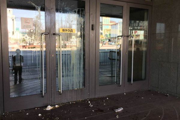 Инцидент, судя по всему, произошел недавно, так как яйца еще не засохли. По словам корреспондента, охранник пытается разогнать зевак, которые столпились у крыльца.