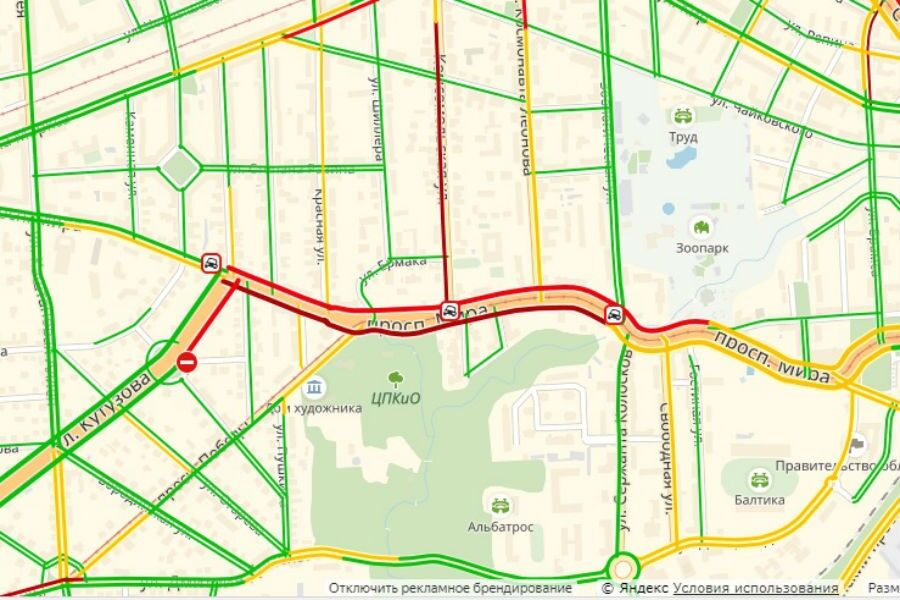 В результате возникли пробки в обе стороны. Скорость движения транспорта оценивается в 3 км в час, аналогичная ситуация — на ул. Комсомольской, у перекрестка с которой произошла одна из дорожных аварий.