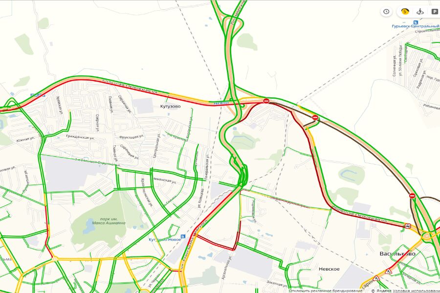 В Калининграде на Большой Окружной образовалась пробка от выезда с ул. Горького до поворота на Гурьевск. Согласно сервису «Яндекс. Пробки», общая протяженность затора составляет порядка 8 км.