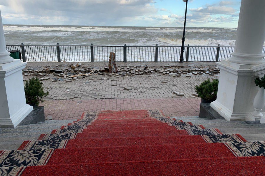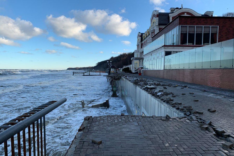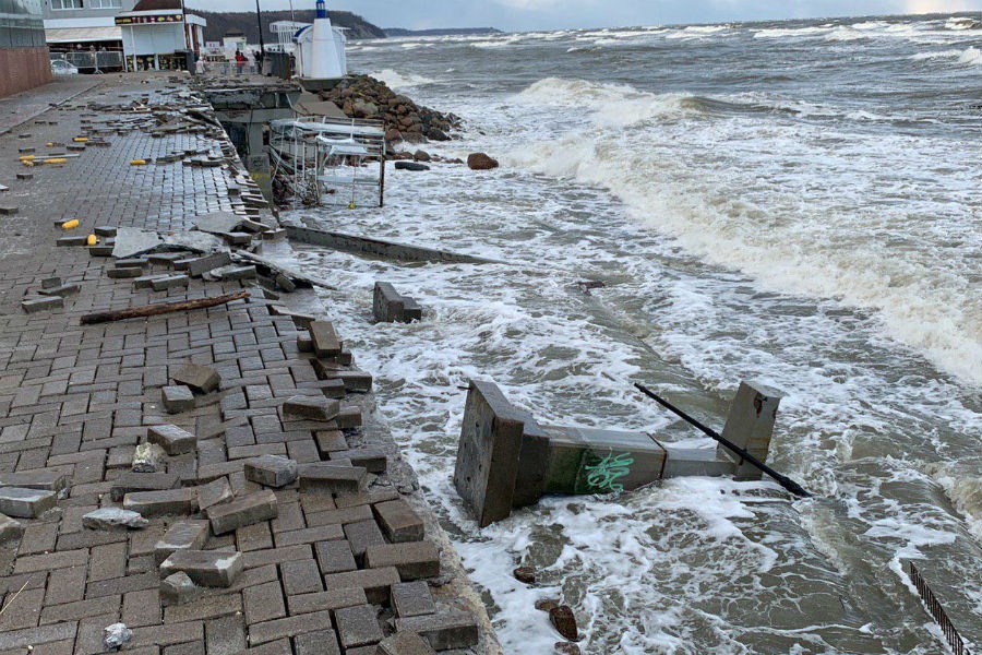 В Светлогорске во время шторма обрушилась часть променада. Два десятка постояльцев гостиницы «Гранд Палас» на всякий случай переселили в другой отель. Власти обещают, что променад начнут восстанавливать, как только улучшится погода. В Пионерском волны также разрушили часть променада, доступ к госрезиденции «Янтарь» закрыт для прохода. Фотокорреспондент «Нового Калининграда» Виталий Невар отправился в Светлогорск и Пионерский, чтобы запечатлеть последствия шторма.