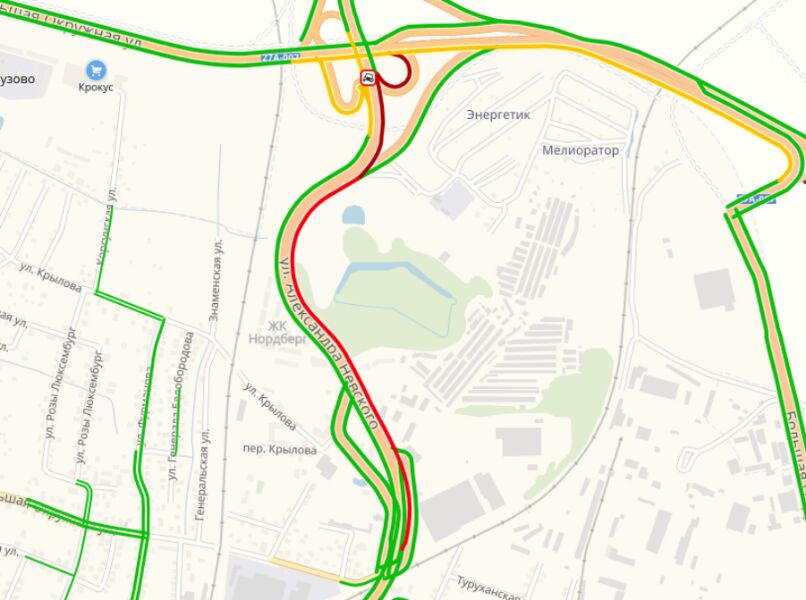 Согласно сервису «Яндекс. Пробки», серьезный затор образовался от автозаправки у форта № 3. Скорость движение в сторону выезда из города на этом участке не превышает 3 км/ч.
