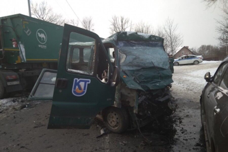 Авария произошла в четверг в 9.28 на улице Суворова. 59-летний водитель микроавтобуса «Пежо», принадлежащего компании, двигался на выезд из города. Мужчина не справился с управлением, микроавтобус выехал на встречную полосу и врезался в грузовик «МАН».