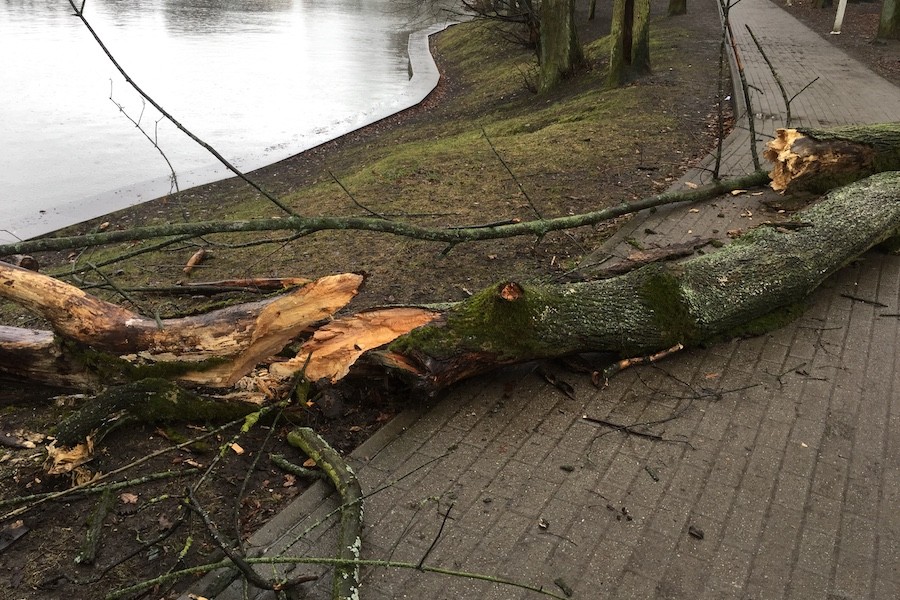 Сильный ветер повалил дерево на пешеходную дорожку, идущую вдоль Верхнего озера. Об этом корреспонденту «Нового Калининграда» во вторник сообщил очевидец происшествия. Дерево упало возле парка «Юность», за его оградой. Никто не пострадал.