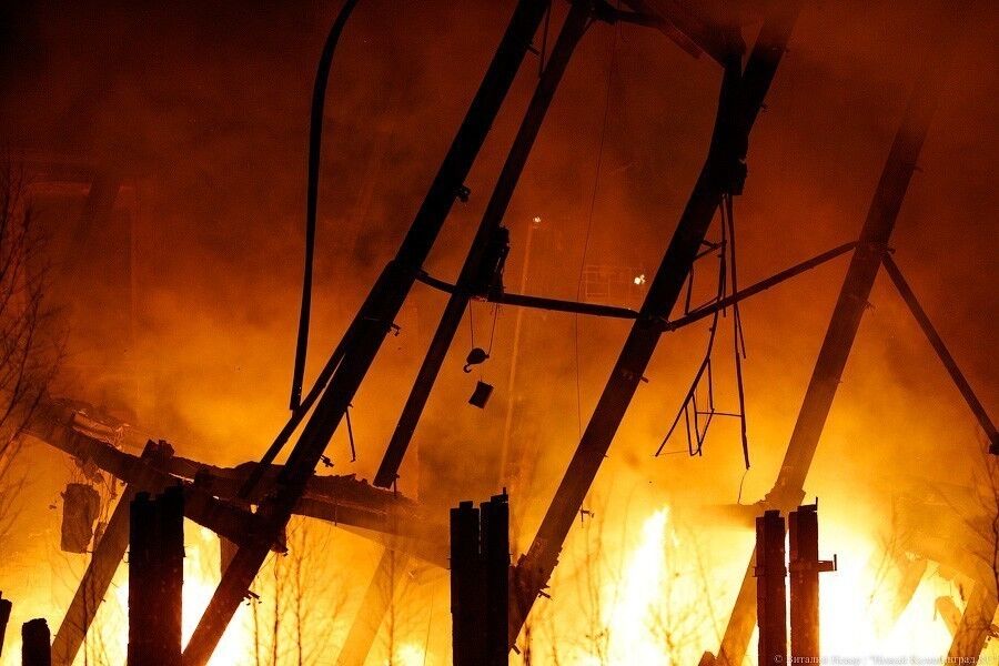 По последующим данным, площадь пожара превысила 1 тыс. кв. м. Частично обрушилась кровля. Рухнула одна из стен здания.