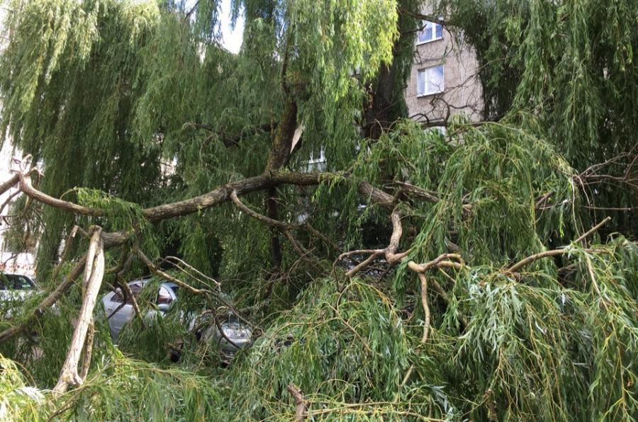 В Калининграде в одном из дворов на ул. Мариупольской дерево упало на два припаркованных автомобиля. Об этом в субботу, 22 июня, сообщается в сообществе калининградских автомобилистов в «ВКонтакте». «Ива прилегла на два авто», — написала очевидец.