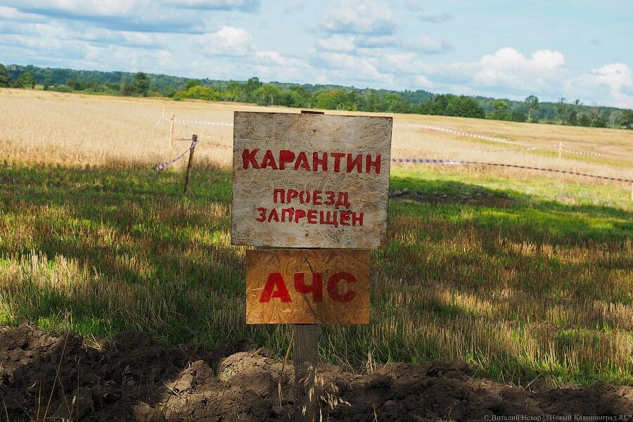 С 23 августа на территории маточника, расположенного к северу от поселка Таманское в Гусевском городском округе, установлен месячный карантин. Всех животных и продукты убоя предписано изъять и уничтожить, посещать предприятие могут только те, кто задействован в ликвидации эпизоотического очага.