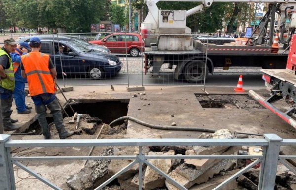 Прорыв трубы произошел возле дома № 5, однако какой именно, специалисты еще выясняют. По их данным, их там две (диаметром 200 и 500 мм). Из-за коммунальной аварии участок одной из полос в сторону пл. Победы пришлось перекрывать, а асфальт снимать. Его обещают уложить в течение недели после устранения прорыва.