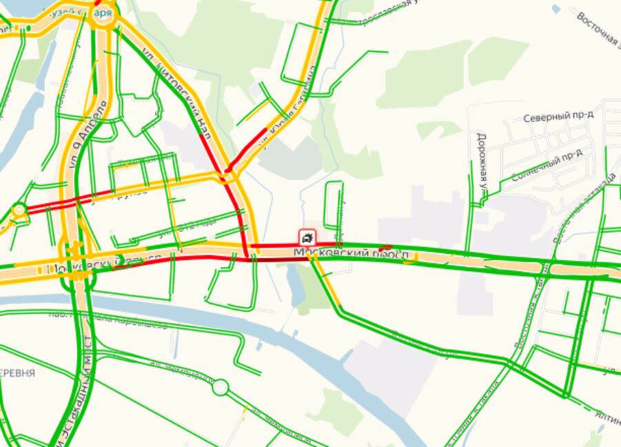 Согласно сервису «Яндекс. Карты», на Московском проспекте в районе ДТП в обоих направлениях образовалась пробка. По предварительным данным, пострадавших в аварии нет.