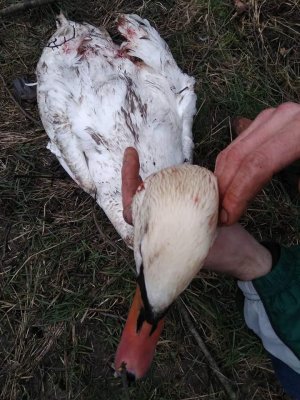 Лебедя пришлось усыпить. Причиной послужило внутреннее кровотечение, часть крови попала в дыхательные пути.