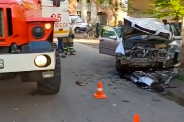 В Полесске «Мерседес» влетел в стену дома, двое в больнице (видео)