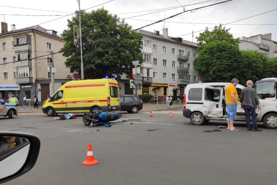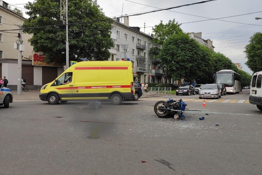 Вечером в субботу на перекрестке улиц Черняховского и Пролетарской произошло серьезное ДТП с участием легкового автомобиля и мотоцикла. Об этом корреспонденту «Нового Калининграда» сообщил очевидец.