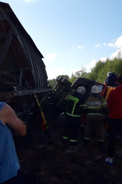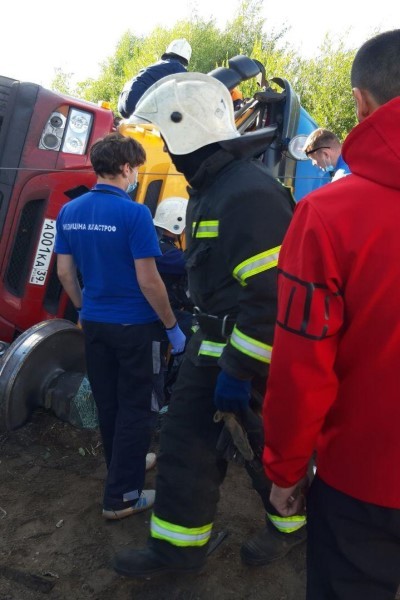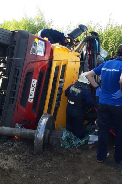 Дополнено: источник в экстренных службах рассказал, что в результате происшествия пострадал один человек — 30-летний водитель песковоза, у него тупая травма живота. Погибших нет.