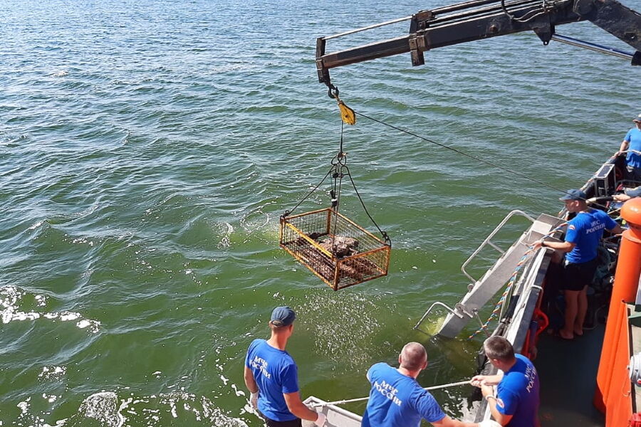 Работы по разминированию баржи начались в середине августа. Местных жителей попросили не ходить на пляж в районе ул. Батарейной в Мечниково.