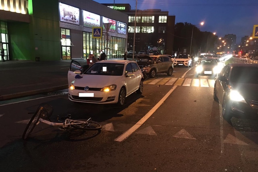 Затем «Киа» врезалась в «Фольксваген» под управлением 33-летней женщины, автомобиль которой отбросило на 59-летнего мужчину. Он шел по пешеходному переходу с велосипедом. Травмы получили пешеход и 58-летняя пассажирка «Фольксвагена».Фото пресс-службы УМВД