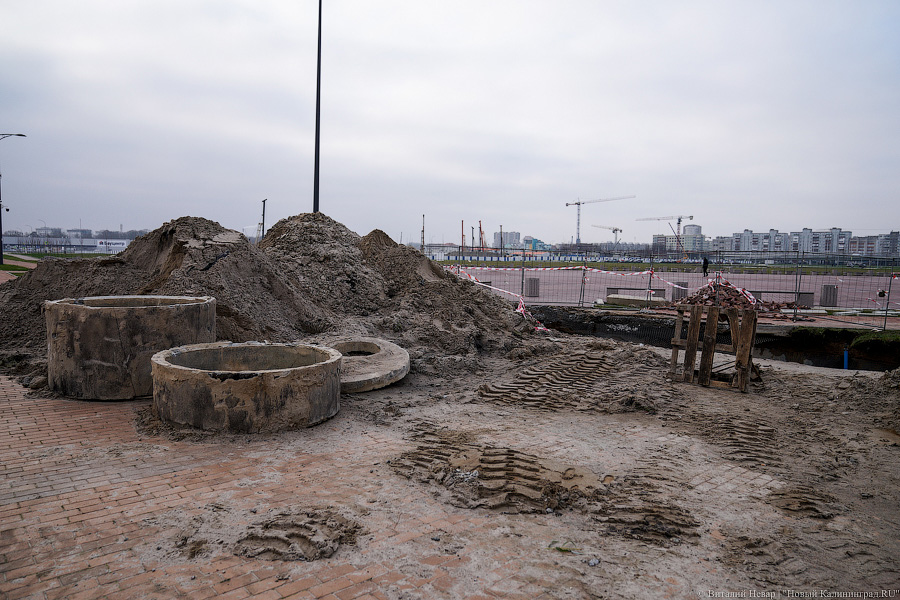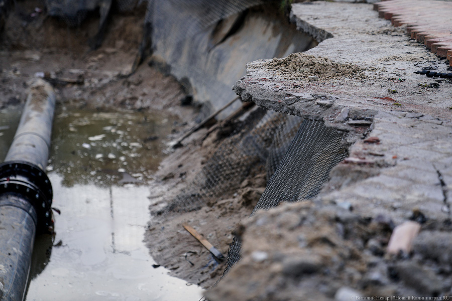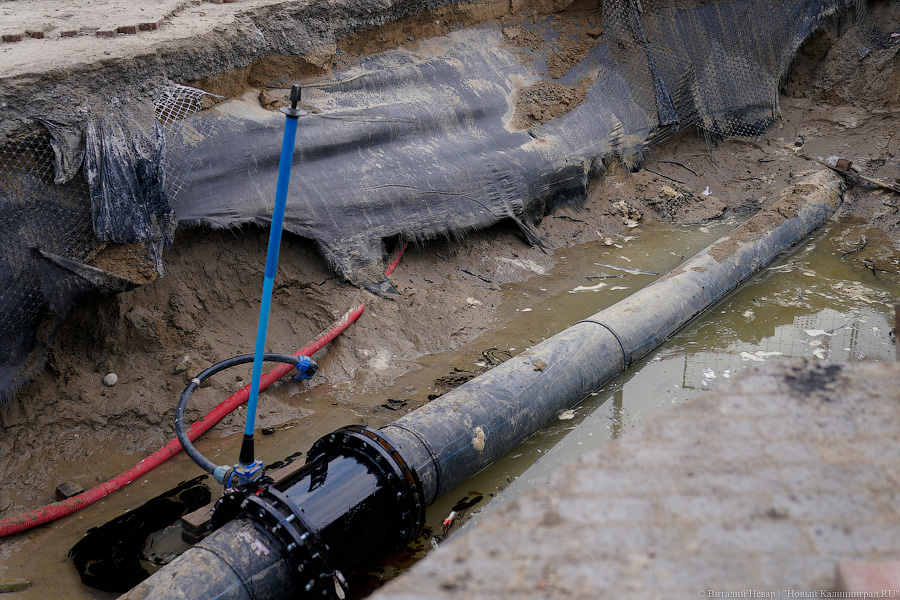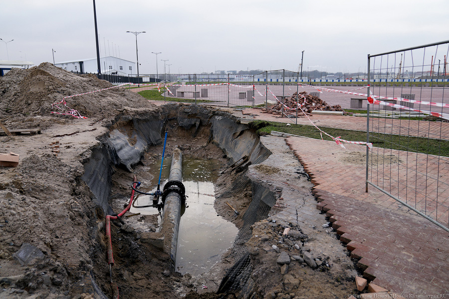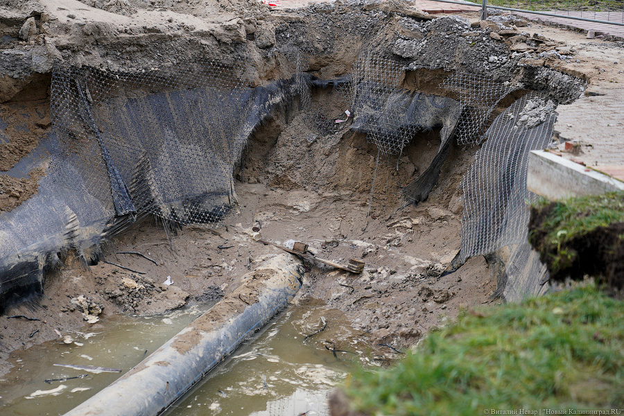 Из-за утечки в конце ноября строительная площадка Фонда культурного наследия была переключена на резервный источник водоснабжения, расположенный на территории стадиона «Калининград». Для временного водоснабжения комбината, который обеспечивает питанием объекты Калининградской инфекционной больницы и Фонда культурного наследия, было проложено 80 погонных метров трубопровода.