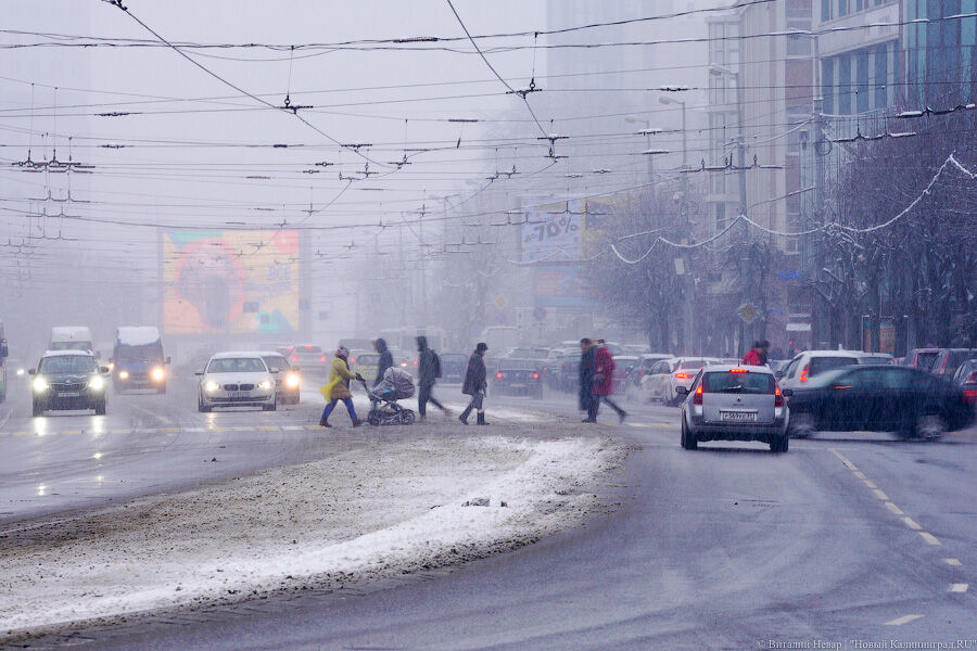 В разных районах Калининграда произошло более десятка ДТП во время снегопада днем 28 января.
