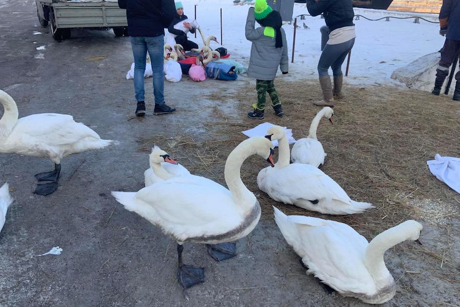 «Лебеди попали в мазут, и от этого половина почти замерзла. Вмерзшие тоже были. Практически 100% лебедей в мазуте», — отметил очевидец.
