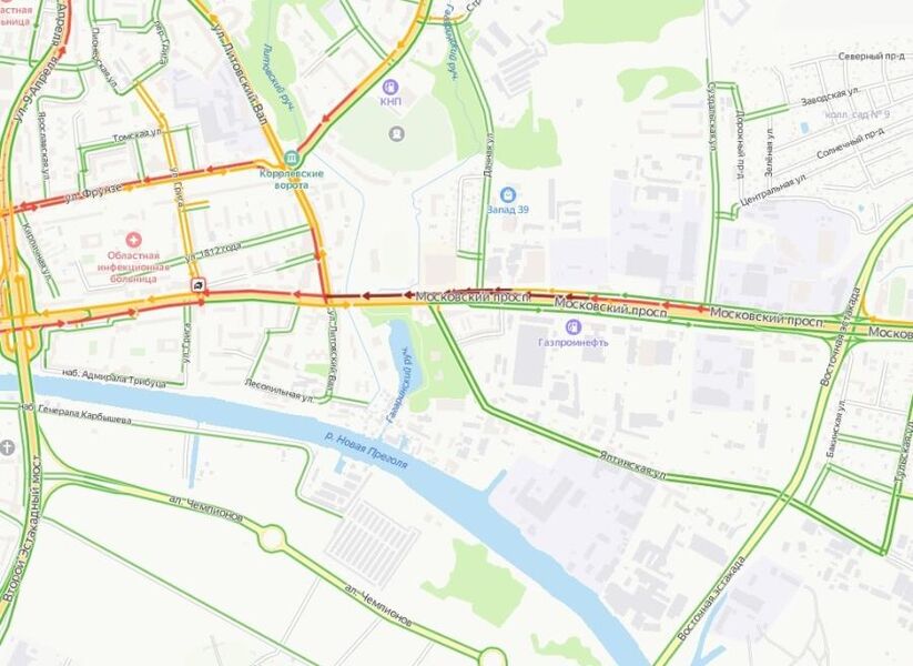 В Калининграде на Московском проспекте образовалась серьезная пробка из-за столкновения двух легковых автомобилей у поворота на ул. Грига. Об этом в четверг, 25 февраля, сообщили в группе калининградских автомобилистов «ВКонтакте».