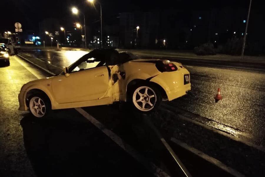 Авария произошла в 00.30 около дома № 33 по улице Согласия. 39-летний водитель «Тойоты» не справился с управлением, машина врезалась в столб, который упал на припаркованный рядом «Форд».