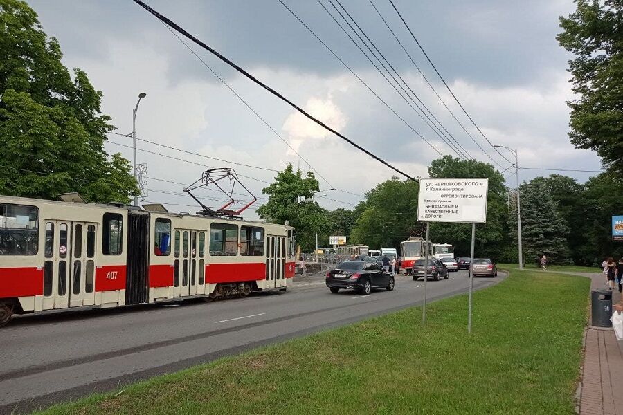 В центре Калининграда собралась серьезная пробка из-за ДТП. Об этом «Новому Калининграду» сообщил очевидец. По его словам, на ул. Черняховского, на участке от Музея янтаря в сторону Центрального рынка, «Порше» столкнулся с трамваем. Участники ДТП заблокировали проезд как трамваев, так и остального транспорта. Ситуацию усугубляет то, что на данном участке ведутся ремонтные работы и часть магистрали отгородили забором.